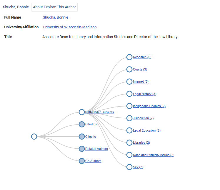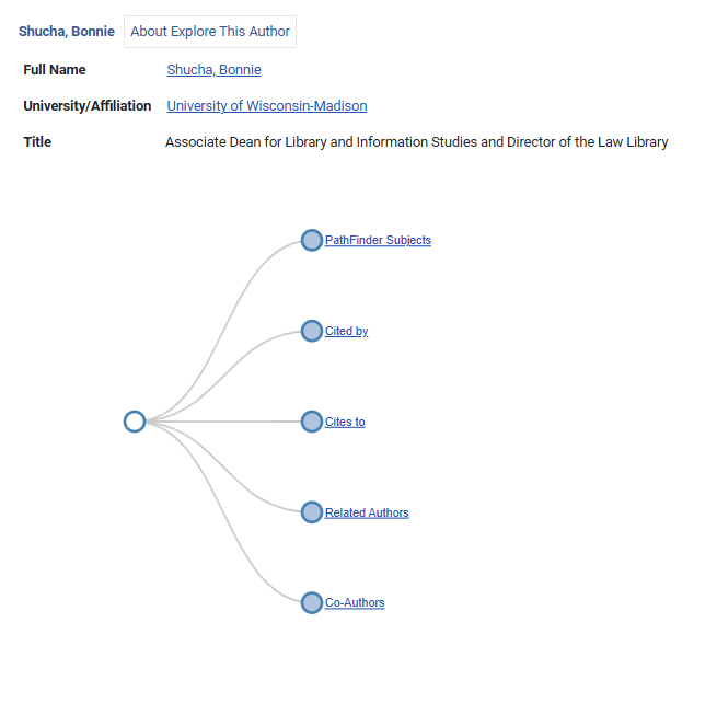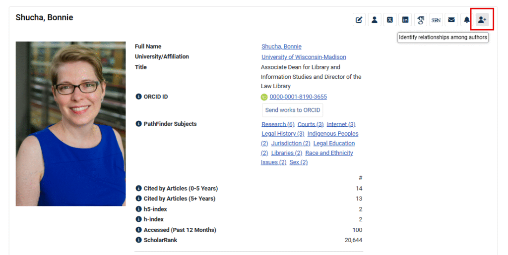 To use the Explore This Author feature, navigate to an author profile page in HeinOnline and select the Explore This Author icon. For example, let’s test out the feature by exploring HeinOnline author Bonnie Shucha.